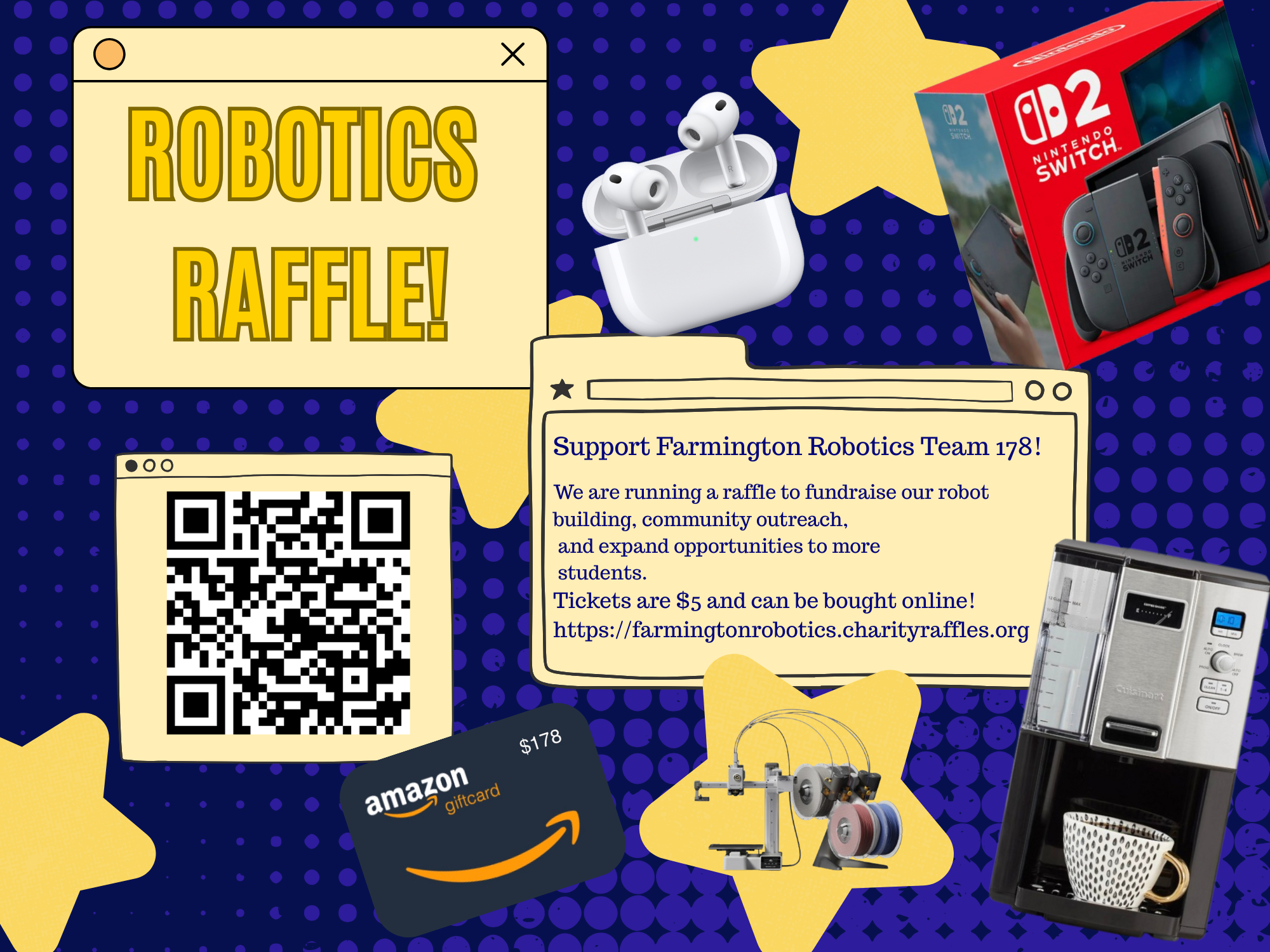 This raffle is our main fundraiser. Funds will help the team purchase robot parts, team shirts and more.